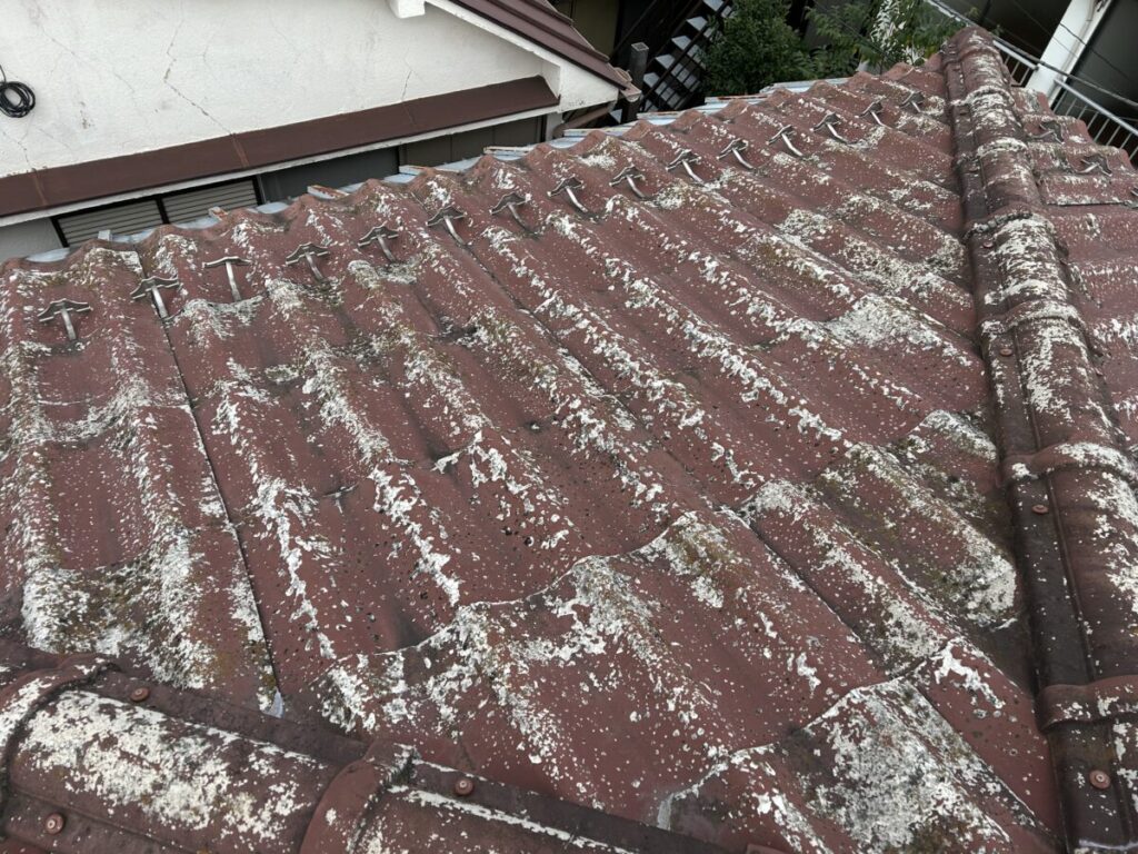 診断対象になった既存屋根材は「セキスイ かわらU」でした。仕様はメーカーが「ノンアスベスト仕様(石綿使用無し)」かわらUに切り替えたばかりに発売されていた商品でした。(※診断の経験値もありますが、シッカリとメーカーに商材特定のできる写真を送り確認しています)