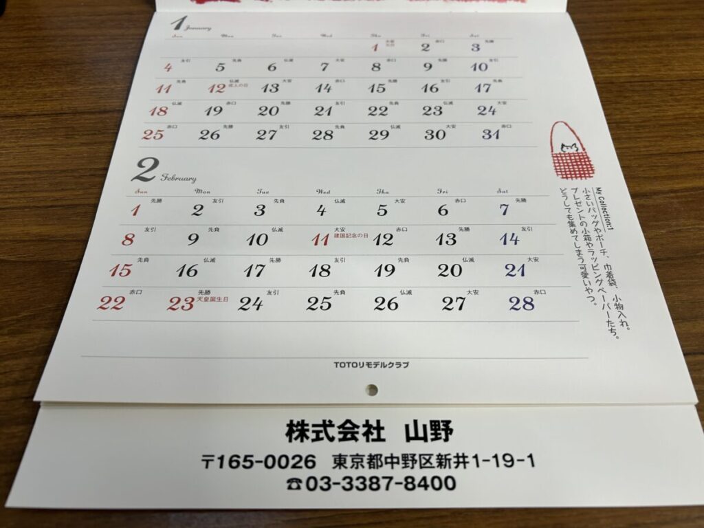 弊社では、加入しているTOTO株式会社さんの「 TOTOリモデルクラブ 」で毎年作成をお願いしている、翌年のカレンダーを工事完了したお客様にお配りしています。