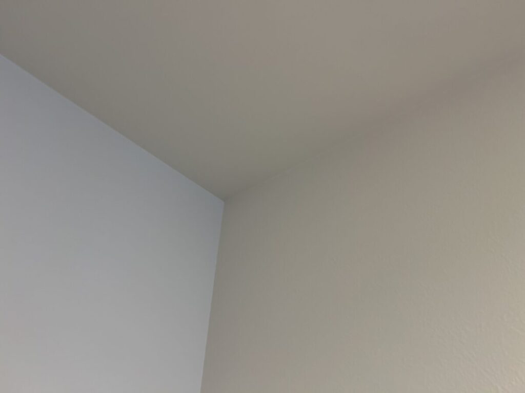 続いては以前、屋根工事を行ったお客様宅の室内クロス張替え(壁・天井)見積作成のため現場調査を行いました。この春にご家族がご転居される予定のため事前に概算の費用が知りたいとのご要望でした。施工時には家具の設置が無い状態になり、家具移動や家具養生等の必要が無く費用を抑える事が出来そうです。