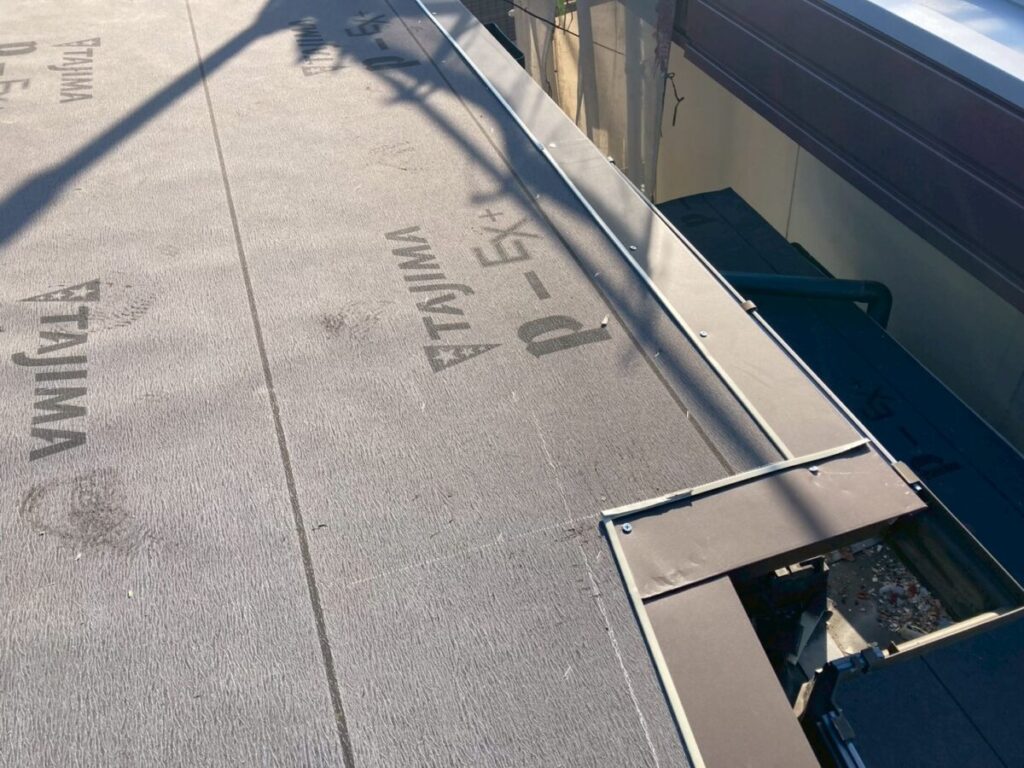 新規使用屋根基材は「ビルトマテリアル株式会社製 BMかんごう立平葺 デコルーフ」になります。ほぼすべての部材が施工現場に併せてオーダー作成できる屋根基材となっています。(基材長さ・軒先けらば唐草)