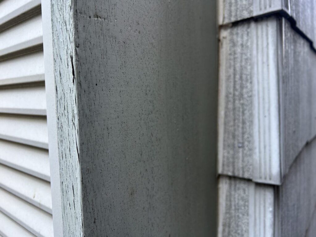既存サッシ交換希望の見積依頼を頂き、現場下見調査を行ってきました。ご連絡時には外壁サイディング材を施工していると聞きましたが、実際は平板スレート材(一般的には「スレート材」のほうが名称として認知されていると思います)が施工されていました。