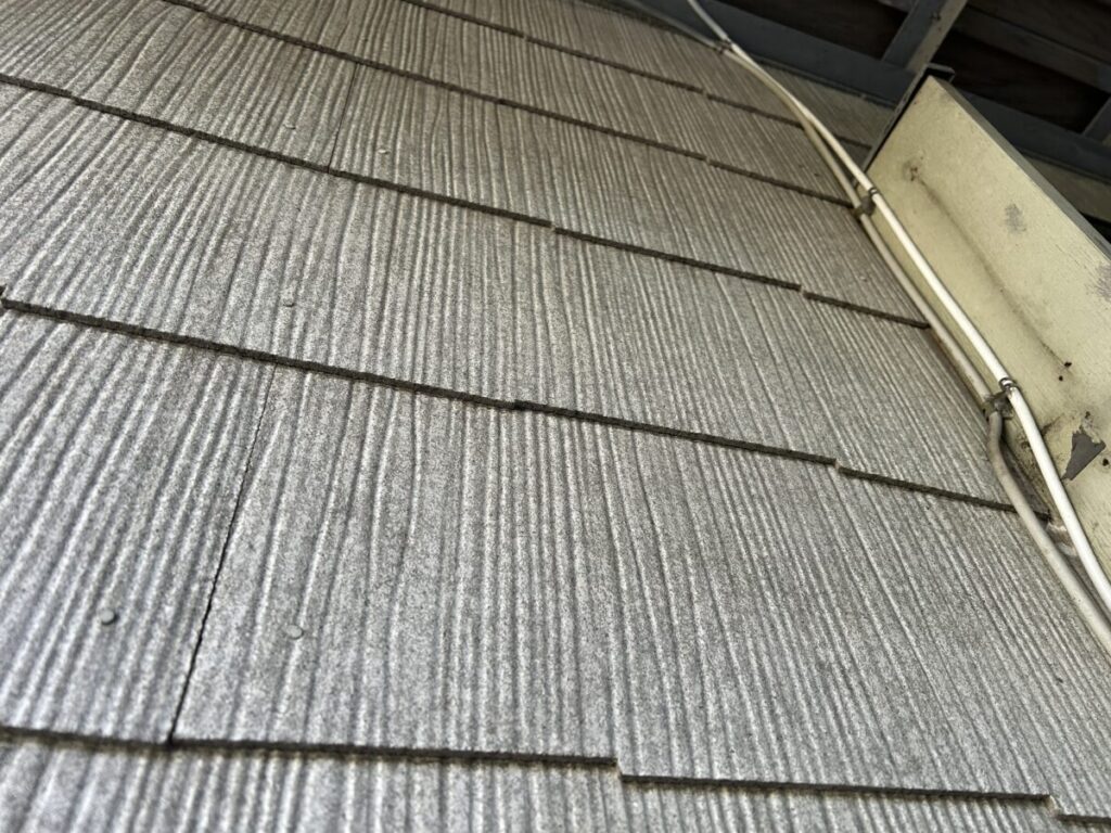 お客様宅は築40年を超える木造住宅で、2004年の時点で「石綿を1%以上使用している建材」の出荷は原則禁止されていますので、石綿使用建材と判断して間違いないと思います。本来であれば設計図面等から詳細を読み解き判断材料にするのですが、残念ながら図面関係の所在が不明との事で築年数から判断しました。