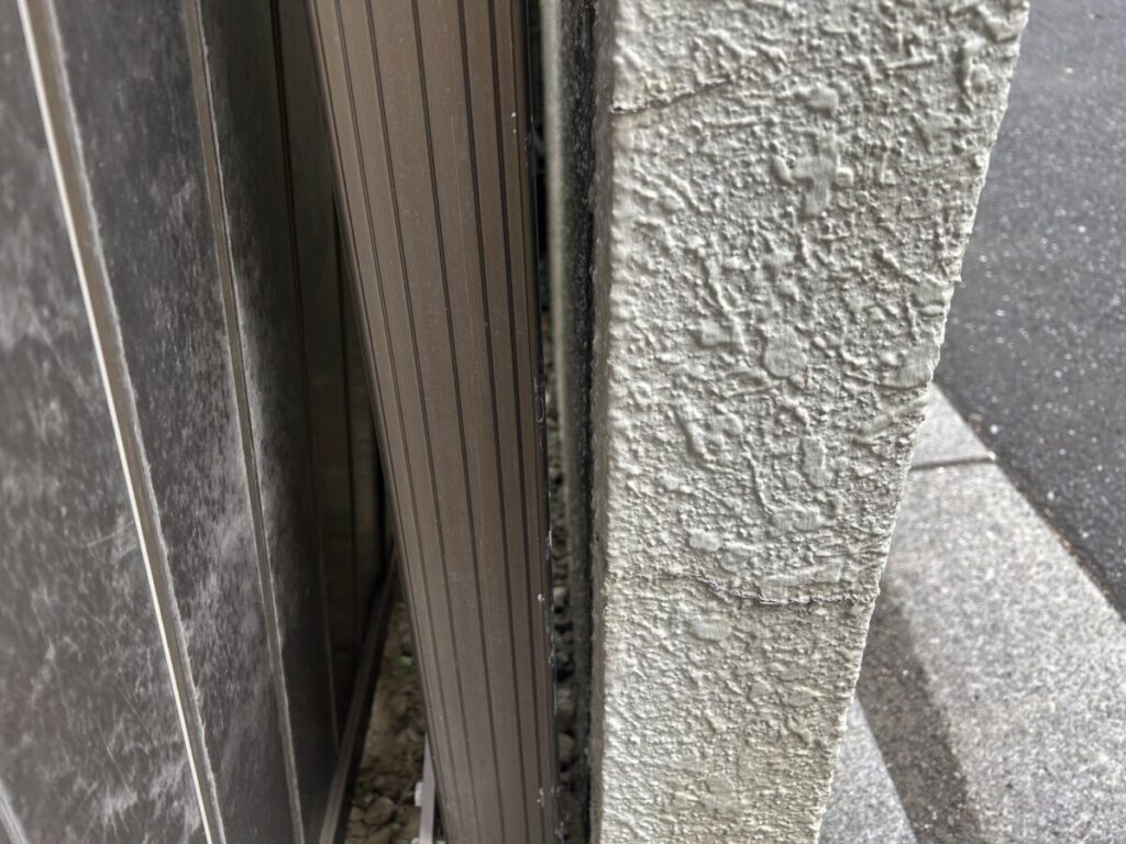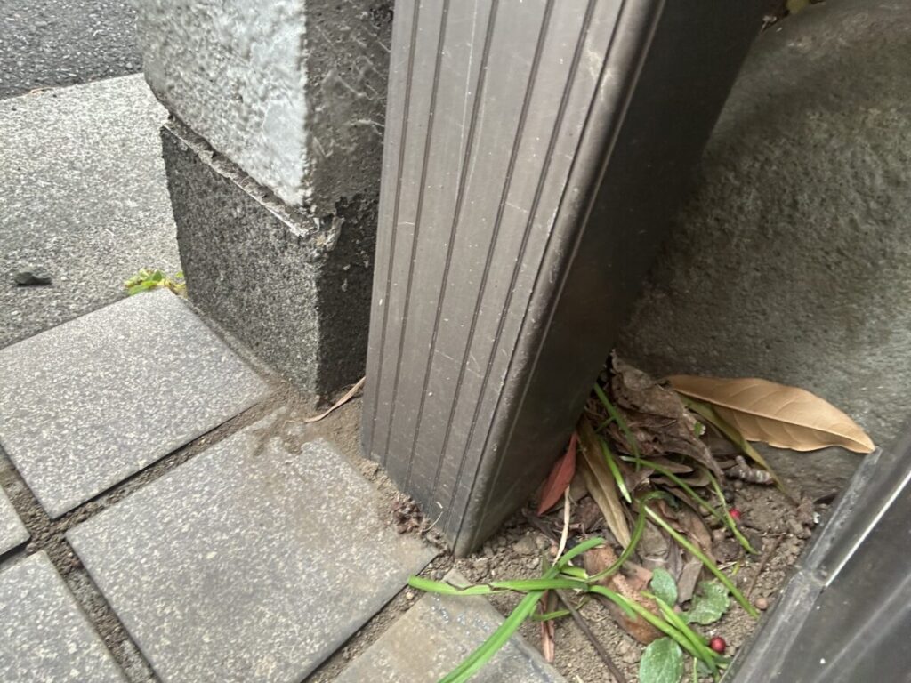 タイル張りの下地作成にはモルタルなどを使用するのだから一緒に門柱も固定してくれれば。と説明しましたが、タイル自体も半分以上がくっついていない状態だから結果は一緒だったかもしれないと悲しい顔をされていました。