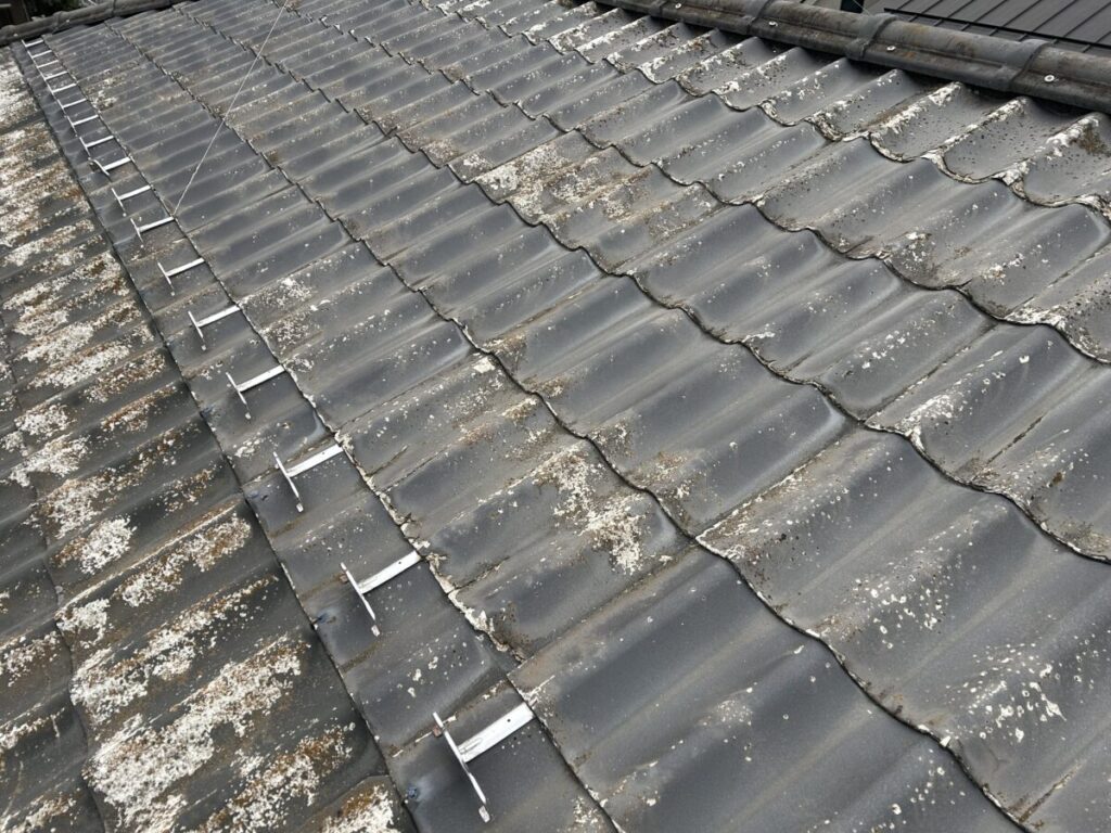ですがこの状態では塗装やシール材で補修などは行えないので、葺き替え内容での見積を提出することとなりました。