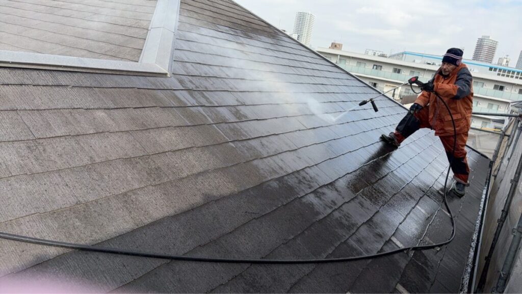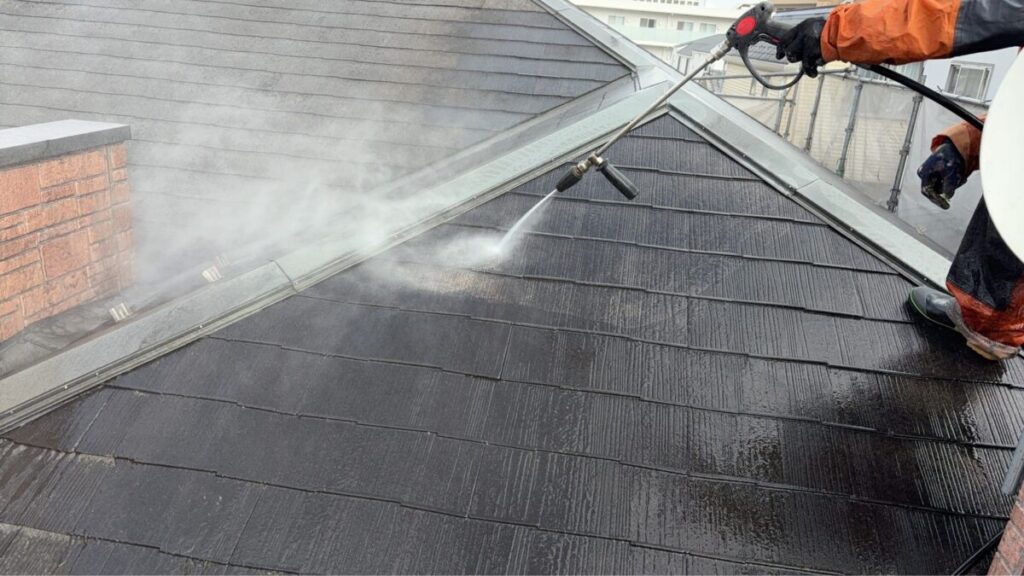 まずは屋根面の洗浄です。