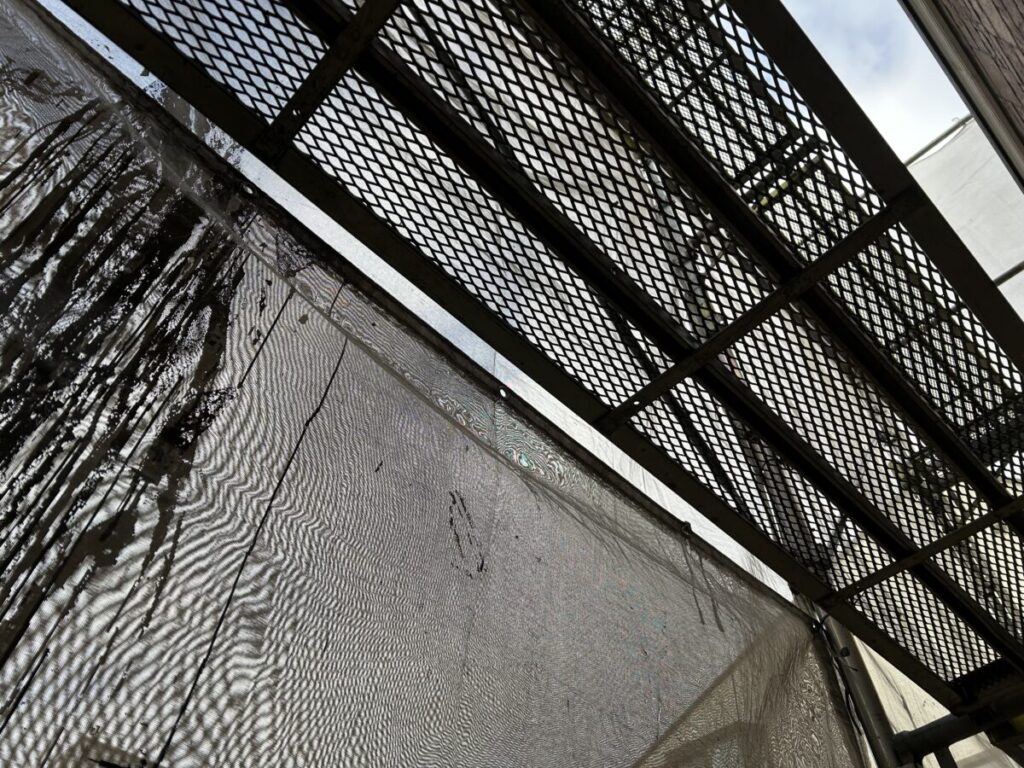 昨日足場設置(BIKEクサビ緊結式足場)を終えた現場の施工初日、洗浄処理に立ち会いました。