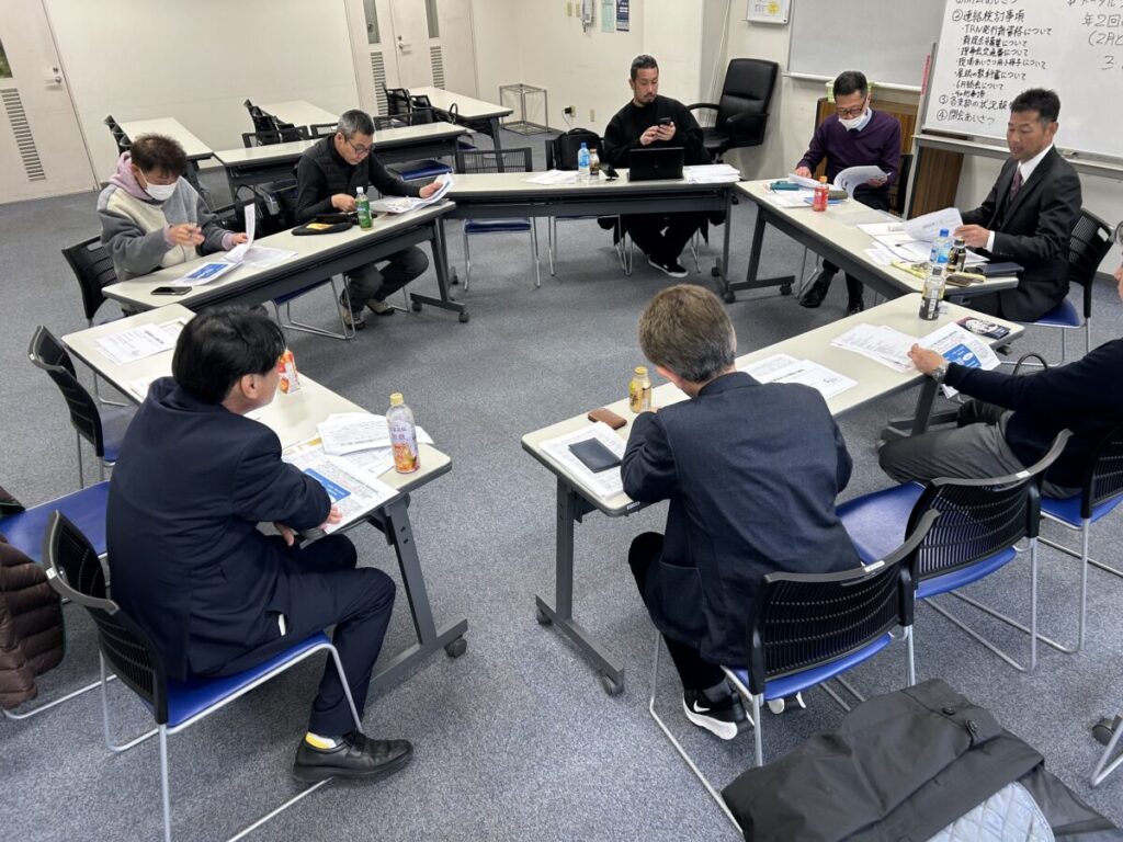 通常であれば毎回、賛助会員さんである複数社の建材メーカーさんを招き、業界の情報共有などを行うのですが今回は6月に開催予定の「総会」で全国の会員さんに発表する案件が多くあり、役職に就いている理事の方たちのみで詳細を詰めていく内容となりました。