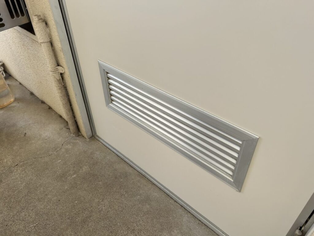 臭いや暑い時期ですと虫が侵入する可能性もある事、ある程度の重量物を置かれる事、工事以後に点検等が必要になった際に脱着しやすい様想定し、強度と耐水性のあるアルミ板を粘度の低い両面テープで固定させて頂きました。