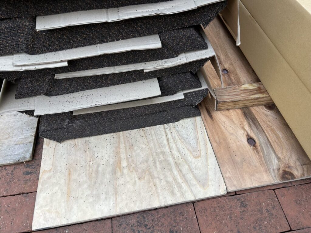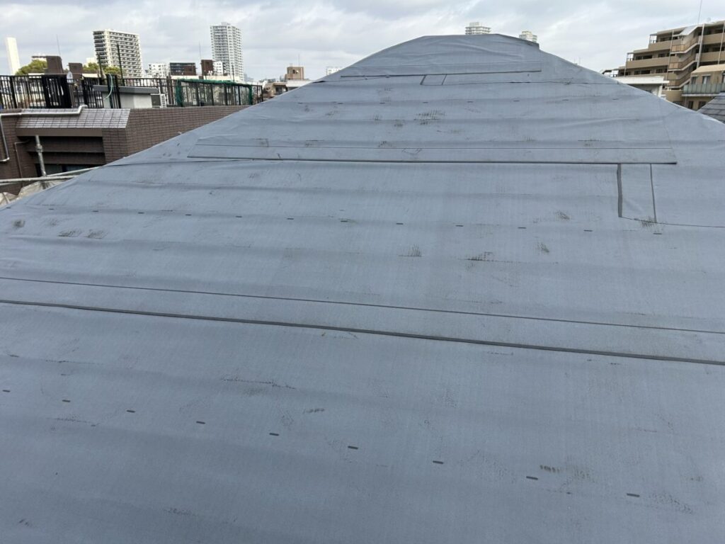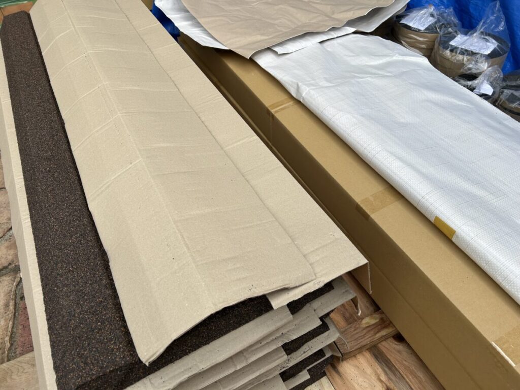 新規下地防水紙張りが終わる少し前に今回使用する新規屋根材「株式会社LIXIL Tルーフ・モダンN」が搬入になりました。