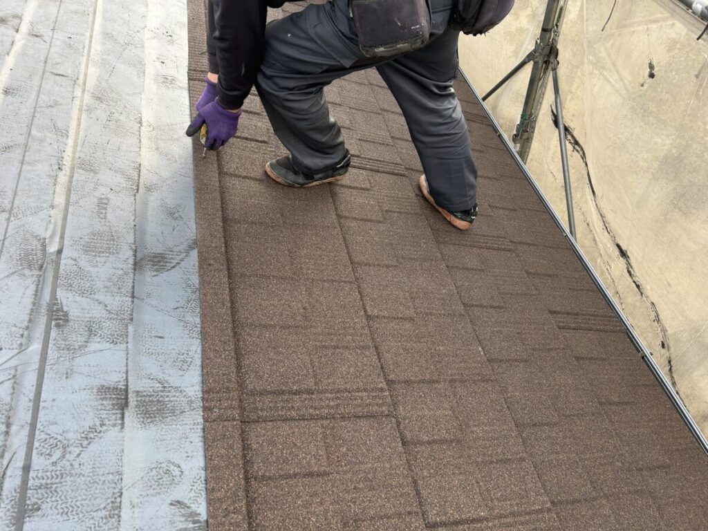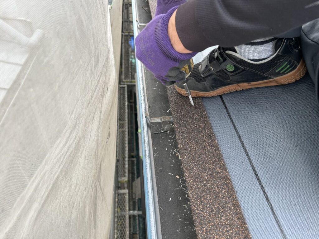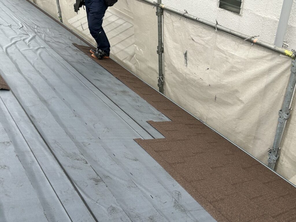 施工が終わっている新規下地防水紙の「水捌け」も良く、工事開始時点でシッカリと乾いていましたので安心して施工に集中できます。