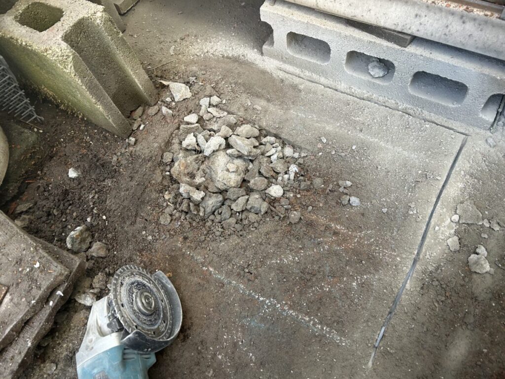 思ったよりもコンクリートが薄かった事(10センチありましたが)手際よく作業も進み半日ほどで作業を終えました。残りは設置時に調整程度のハツリ作業がありますが、恐らく1日で施工も完了すると思います。