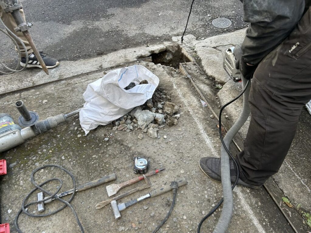 弊社の案内が掲載されている「中野区報」をご覧になった方から、外構工事の相談を頂いていた案件の工事開始となったので立ち合いを行いました。