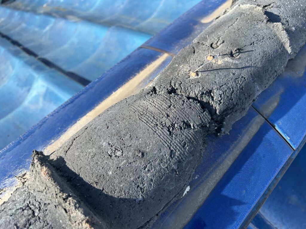 今回は漆喰にシリコンが入っている「南蛮漆喰」のタイプだったため、釉薬瓦にくっ付いてしまっており撤去が大変そうでした。