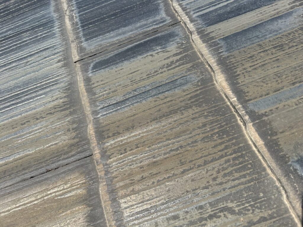屋根基材は一般的な平板スレート屋根材でした。要所要所でお手入れをされており築年数からみると、基材の状態は良く屋根全体を歩行して強度確認・目視と触診で細部を確認しましたが、棟板金部分の防水処理(シーリング)以外に雨漏りに直結するような部位の劣化は見つけられませんでした。詳細をお伝えしてお客様の要望をお聞きし見積書提出までの流れを説明させて頂きました。