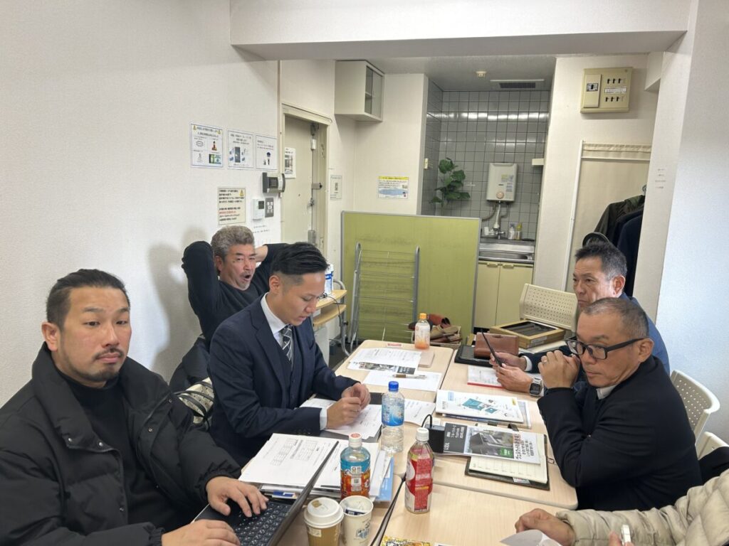 「有限会社エクセレントショップ横浜」さん「有限会社港北ハウジング」さんは「屋根屋のノブ(有限会社リルーフ)」さん「株式会社スルガ住研」さん屋根のフルヤさん「株式会社Cure Build」さんら関東支部の方々と総会で発表する内容の修正と確認を細かく行いつつ、来月までに準備する内容も決めていきました。