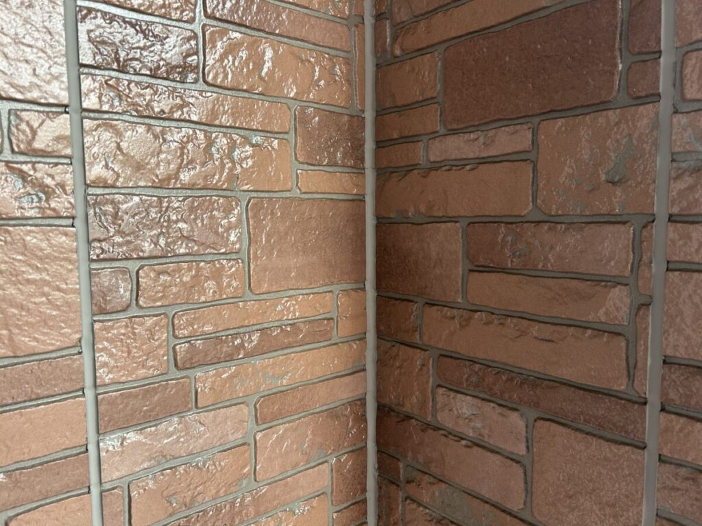 続いて、外壁部の塗装他工事が完了したお客様宅で先日施工を行った目地打替工事の定着具合の確認と養生用マスキングテープの剥がし忘れや目地材の飛散がないかを確認させて頂きました。