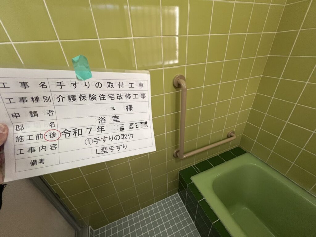 以前、屋根と雨トイの改修工事をお願いして、丁寧に工事を行って頂きました。その際に福祉住環境コーディネーターさんと福祉用具専門相談員さんがいるとお聞きしたので、浴室内の出入り用に手摺りを取り付けたい旨を相談いたしましたら、高齢者自立支援の事を教えて下さり、助成金を利用して工事が出来ました。