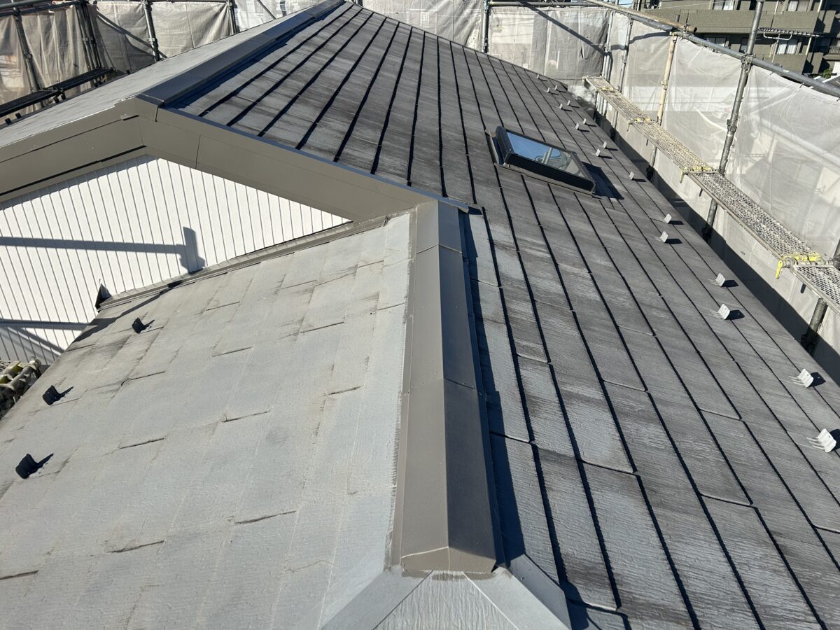 施工前 平板スレート(コロニアル) 近年の夏場の気温上昇で、居室内屋根裏温度が「50度」を超えてしまう時もあり、気温上昇の原因が「屋根材が直接屋根下地に接しているから...