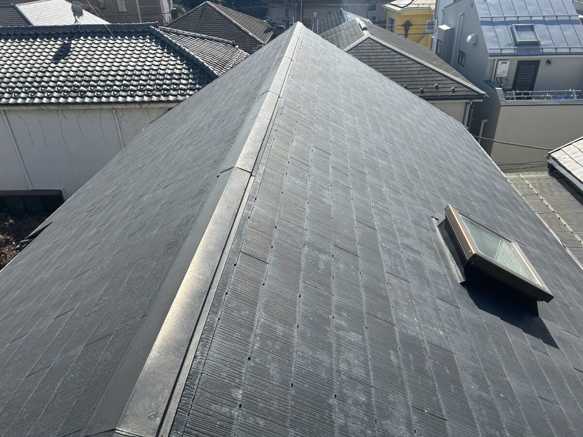 施工前 平板スレート(コロニアル)(明り取りからの室内への雨漏りあり) 過去に「補修工事」を数回行っているが、雨漏りが再発したので屋根診断を行ってほしいとのご連絡を頂...