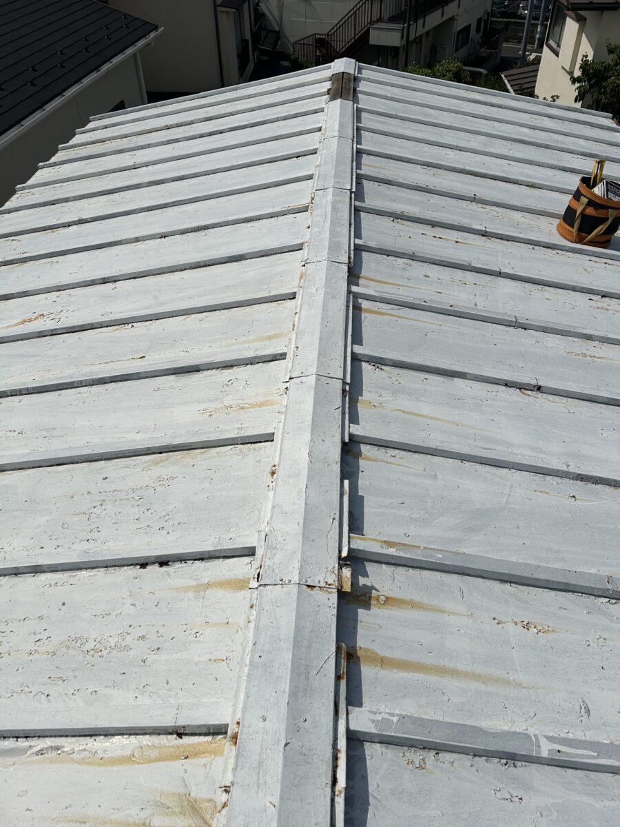 施工前 鉄板瓦棒 風の強い雨の日の翌日、「屋根から大きな音がして金属が落ちてきた」とのご連絡を頂き、屋根に登ると写真の様に棟板金が外れていました。 ...